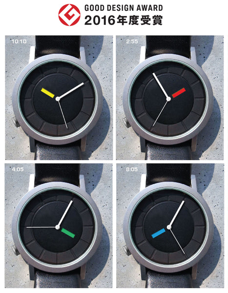 評價:雖然乍看之下是一款簡單的手錶,但它成功地將看不見的時間概念變得可見。一天不是簡單地劃分為二十四小時;而是劃分為二十四小時。重點是早晨、傍晚、夜晚的感覺的變化,而這些感覺是用顏色來表達的。一個帶有狹縫的圓盤充當時針,旋轉時會顯露出狹縫後面的顏色。手錶可以精確地報時,但它充滿了詩意,讓人會心一笑。